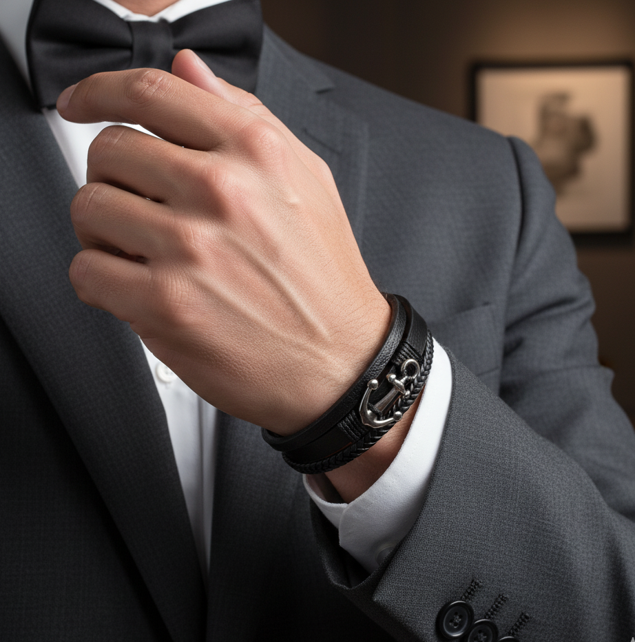 Esta pulsera de cuero auténtico con dije y broche de acero inoxidable refleja seguridad y confianza. Su diseño robusto y duradero simboliza fortaleza, mientras que el ajuste seguro garantiza fiabilidad. Un accesorio que destaca tu estilo con una presencia poderosa y decidida.