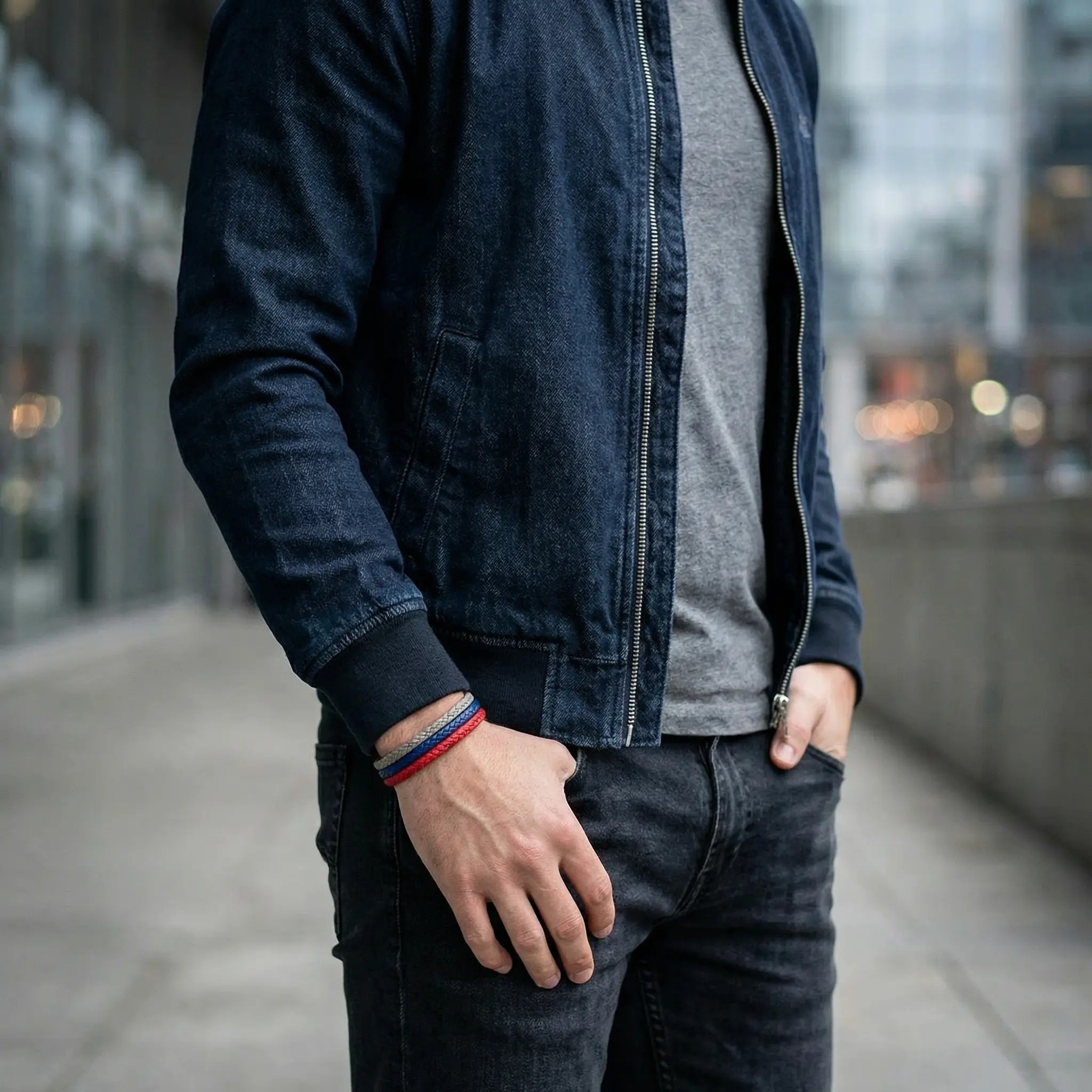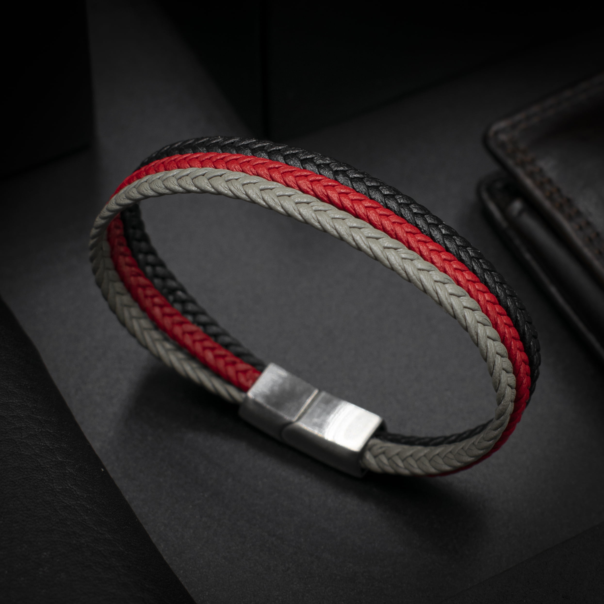 - El modelo de cuero trenzado en tres colores vibrantes con cierre plateado simboliza la energía del cambio, la integración de diversas experiencias y la vitalidad de un espíritu audaz que se mueve con confianza.