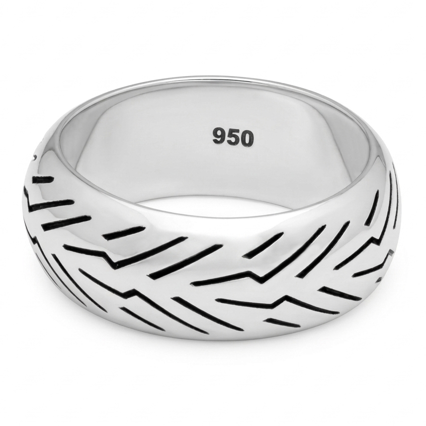 Acelera tu estilo con este anillo exclusivo en Plata de Ley 950. Un diseño de huella de neumático que grita libertad y distinción.